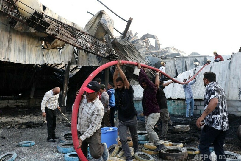 ソーシャルメディアに投稿された映像には、激しい炎が建物を飲み込み、黒煙が立ち上る様子が捉えられている。AFPは動画の真偽について確認できていない。