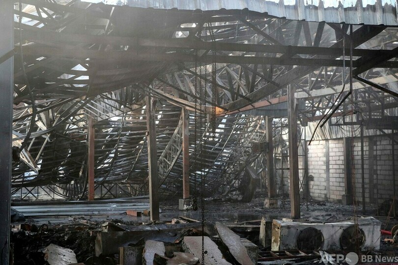 ソーシャルメディアに投稿された映像には、激しい炎が建物を飲み込み、黒煙が立ち上る様子が捉えられている。AFPは動画の真偽について確認できていない。