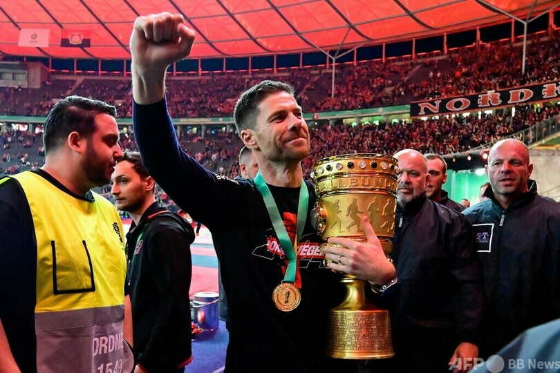 レバークーゼンのシャビ・アロンソ(Xabi Alonso)監督は独公共放送ARDに対し、「最後にこのような勝利を収めて、われわれはチームスピリットを示した。ファン、クラブ、みんなのために懸命に戦った。2冠達成。素晴らしいシーズンだった」と述べた。(c)AFP