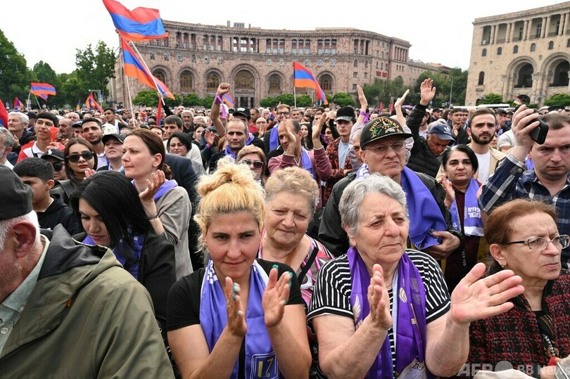 【5月27日 AFP】アルメニアの首都エレバンで26日、アゼルバイジャンへの土地の返還に反対する数千人の市民が抗議デモを行い、ニコル・パシニャン(Nikol Pashinyan)首相の退任を要求した。
