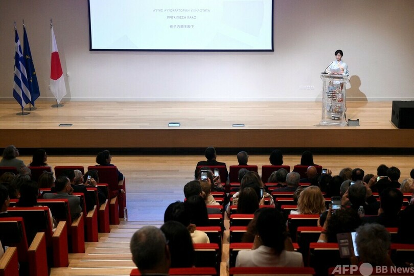 【5月28日 AFP】ギリシャを公式訪問中の秋篠宮ご夫妻の次女、佳子さまは首都アテネで27日、日本とギリシャの外交関係樹立125年周年および「日本・ギリシャ文化観光年」を記念する式典に出席された。