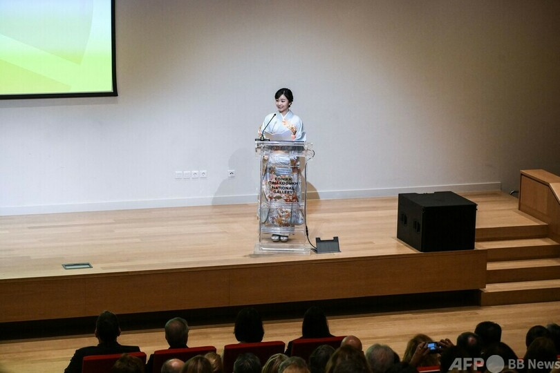 佳子さまは国立ギャラリー(美術館、National Gallery)で行われた式典に着物姿で臨み、お言葉を述べた。
