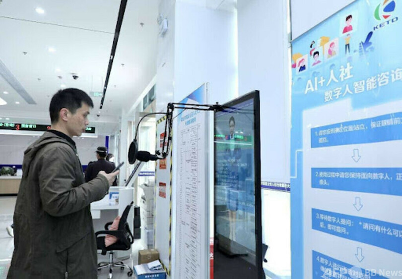 中国信通院AI研究センターの巫彤寧(Wu Tongning)副主任は、「多くの革新的応用が登場したことで、AIを利用したソフトウエアおよびハードウエアを支援する体系に対して、より高い需要が喚起されました」と説明した。中国では新技術によるAIビッグモデルへの需要増が、演算力、アルゴリズム、データ関連の発展をけん引しつつある。(c)Peopleʼs Daily/AFPBB News