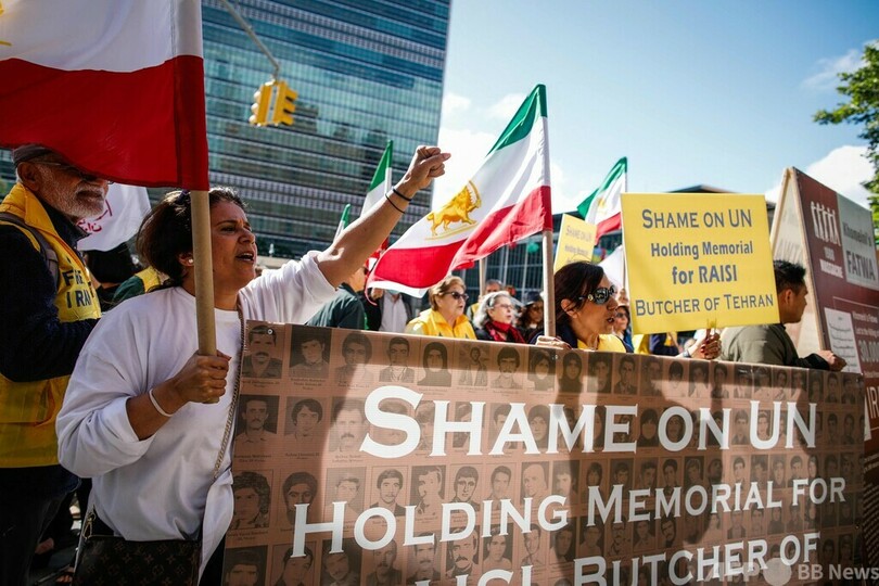 米ニューヨークの国連本部前では、イランの反体制派数十人が 「国連の恥 」とシュプレヒコールを上げた。