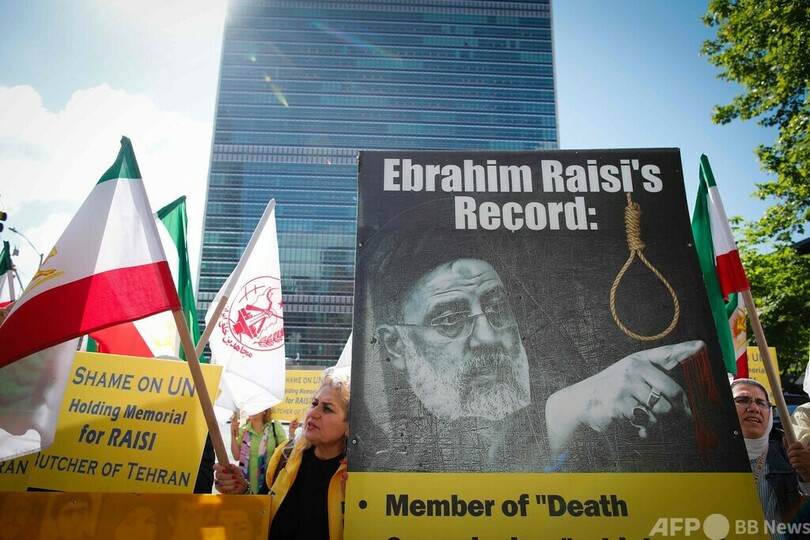 米ニューヨークの国連本部前では、イランの反体制派数十人が 「国連の恥 」とシュプレヒコールを上げた。