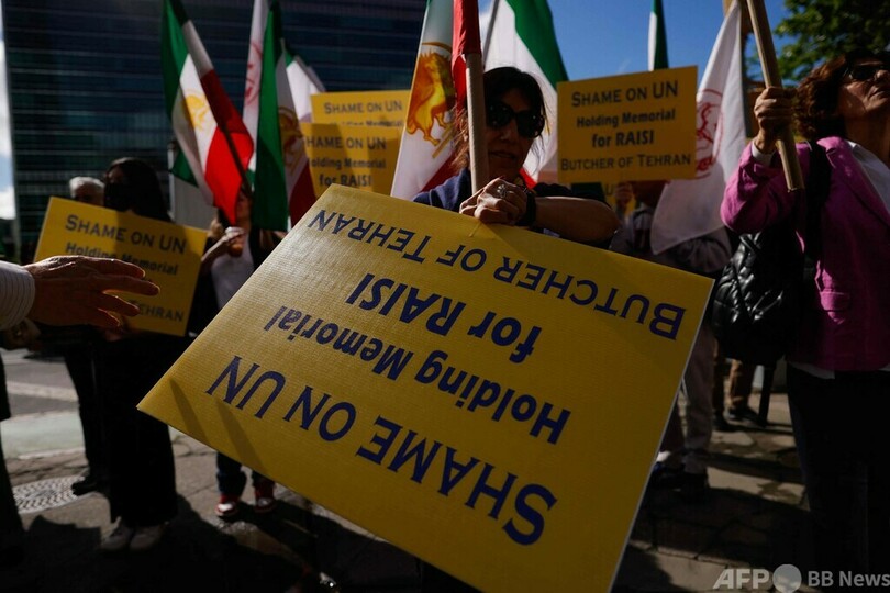 米ニューヨークの国連本部前では、イランの反体制派数十人が 「国連の恥 」とシュプレヒコールを上げた。