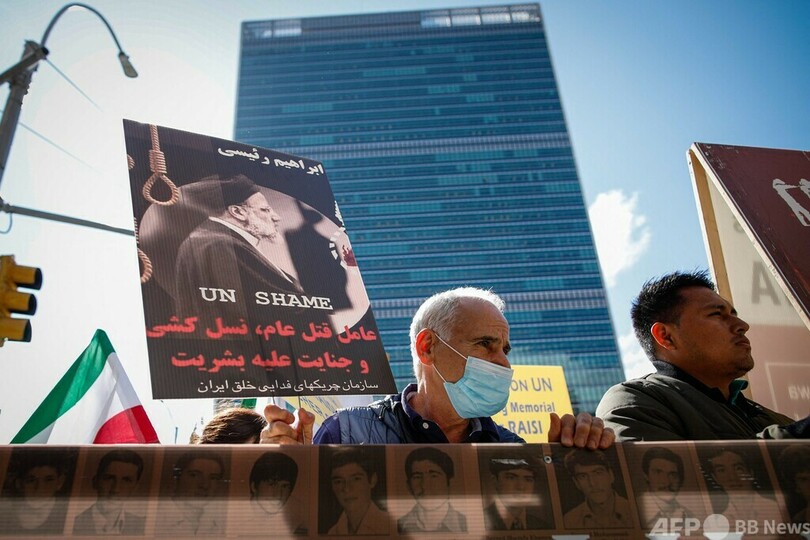 米ニューヨークの国連本部前では、イランの反体制派数十人が 「国連の恥 」とシュプレヒコールを上げた。