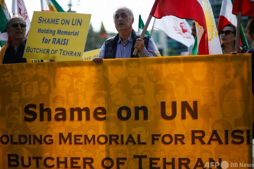 米ニューヨークの国連本部前では、イランの反体制派数十人が 「国連の恥 」とシュプレヒコールを上げた。