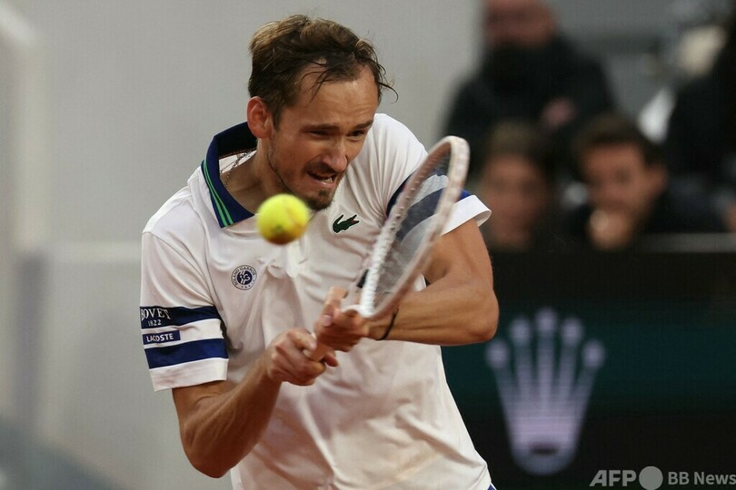 試合はメドベージェフが7-6(7-4)、7-5、1-6、6-4で勝利し、4回戦へ駒を進めている。(c)AFP