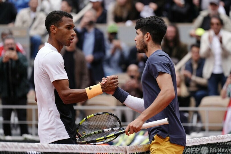 【6月3日 AFP】全仏オープンテニス(French Open 2024)は2日、男子シングルス4回戦が行われ、大会第3シードのカルロス・アルカラス(Carlos Alcaraz、スペイン)は6-3、6-3、6-1で第21シードのフェリックス・オジェ・アリアシム(Felix Auger-Aliassime、カナダ)を下し、準々決勝進出を決めた。