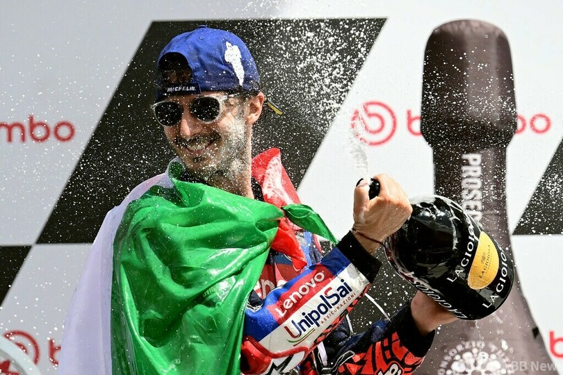 【6月3日 AFP】ロードレース世界選手権、第7戦イタリアGPは2日、MotoGPクラス決勝が行われ、ドゥカティ・レノボ・チーム(Ducati Lenovo Team)の王者フランチェスコ・バニャイア(Francesco Bagnaia、イタリア)が母国大会3連覇を達成した。