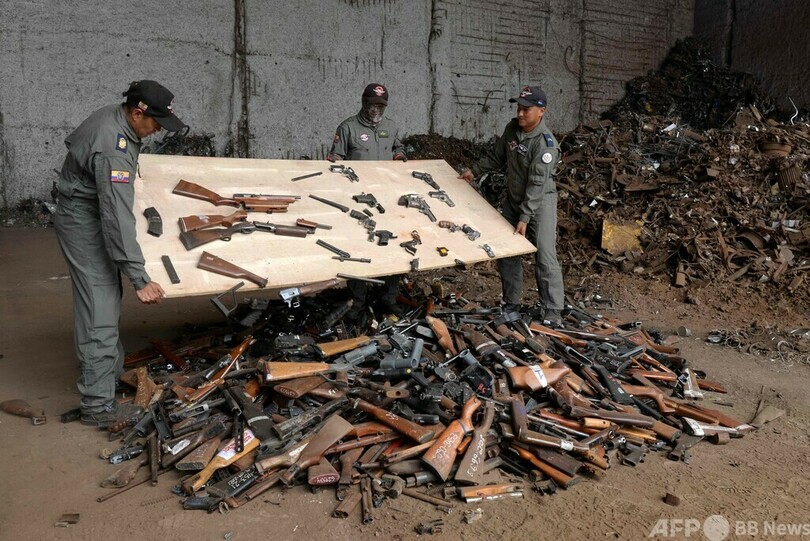 ニュース 社会 今日の1枚 【今日の1枚】磁石で一網打尽 エクアドル 2024年6月12日 12:15 発信地:グアヤキル/エクアドル [ エクアドル 中南米 ] このニュースをシェア ‹ › ❮ 4/4 ❯ エクアドル・グアヤキルで、当局により押収された武器の破壊処理を担当するエクアドル軍の兵士ら(2024年5月30日撮影)。(c)Gerardo MENOSCAL / AFP 画像作成中 ! 【6月12日 AFP】磁石に吸い寄せられた大量の武器。エクアドル・グアヤキル(Guayaquil)で。当局により押収されたこれらの武器は、エクアドル軍によって破壊処理される。(c)AFP 社会 一覧へ> メディア・報道関係・法人の方向け 写真・動画 購入のお問合せ>