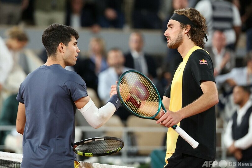 【6月5日 AFP】全仏オープンテニス(French Open 2024)は4日、男子シングルス準々決勝が行われ、大会第3シードのカルロス・アルカラス(Carlos Alcaraz、スペイン)は6-3、7-6(7-3)、6-4のストレートで第9シードのステファノス・チチパス(Stefanos Tsitsipas、ギリシャ)を一蹴し、勝ち上がりを決めた。準決勝では、ノバク・ジョコビッチ(Novak Djokovic、セルビア)の棄権により世界ランク1位浮上が決まったヤニック・シナー(Jannik Sinner、イタリア)と対戦する。