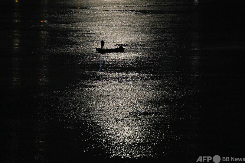 【6月10日 AFP】チグリス(Tigris)川とユーフラテス(Euphrates)川が合流するシャトルアラブ(Shatt al-Arab)川で、月明かりに照らされた船の上で働く漁師。イラク南部バスラ(Basra)で。(c)AFP