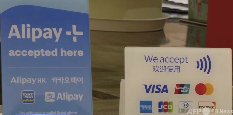 統計によりますと、4月の国際クレージッドカードによる決済件数と金額は2月より倍増し、海外からの渡航者200万人以上がモバイル決済を利用したとのことです。(c)CGTN Japanese/AFPBB News