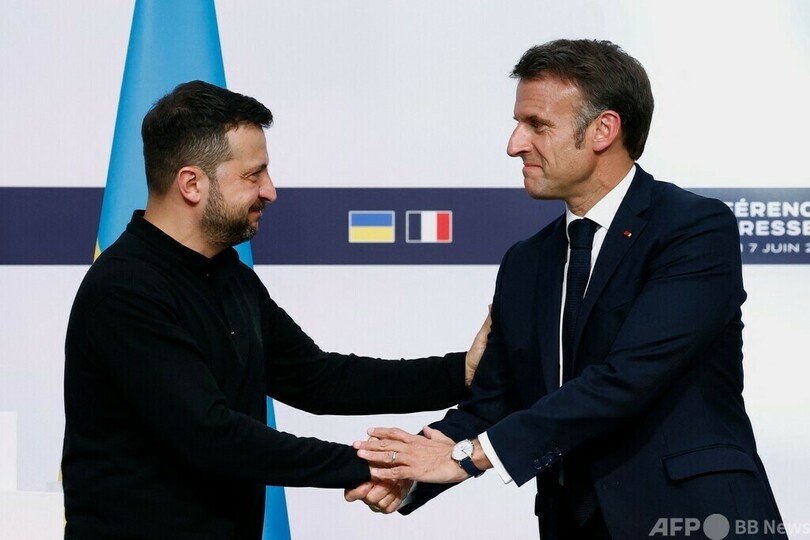 マクロン氏はパリでウクライナのウォロディミル・ゼレンスキー(Volodymyr Zelensky)大統領と共同会見に臨み、「われわれは、この反戦主義陣営を知っている。それは降伏論を唱える負け犬根性の持ち主でもある」と述べ、極右を含め、国内の批判勢力をあからさまに批判した。