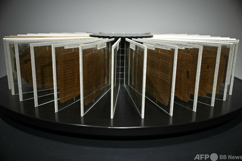 1950年代にエジプトの農業従事者によって発見された。パピルス紙の両面にコプト語で書かれ、現在はプレキシガラスに挟んで保存されている。巻物の片面に文字が書かれているのが一般的だった当時の筆記技術の進歩を示している。(c)AFP