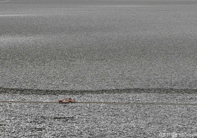 【12月10日 AFP】地球上で最も乾燥した場所とされるチリのアタカマ砂漠。夕暮れの塩原(えんげん)では、リチウムの濃度を測定するため、掘削機で塩水を抽出する作業が行われていた。