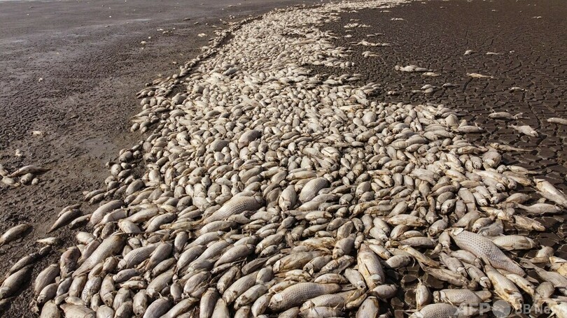 【6月13日 AFP】メキシコで干ばつが深刻化している。北部チワワ州のブスティージョス湖(Bustillos lagoon)では水位が著しく下がり、魚の大量死が起きている。