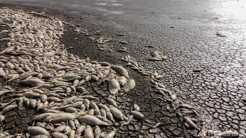 【6月13日 AFP】メキシコで干ばつが深刻化している。北部チワワ州のブスティージョス湖(Bustillos lagoon)では水位が著しく下がり、魚の大量死が起きている。