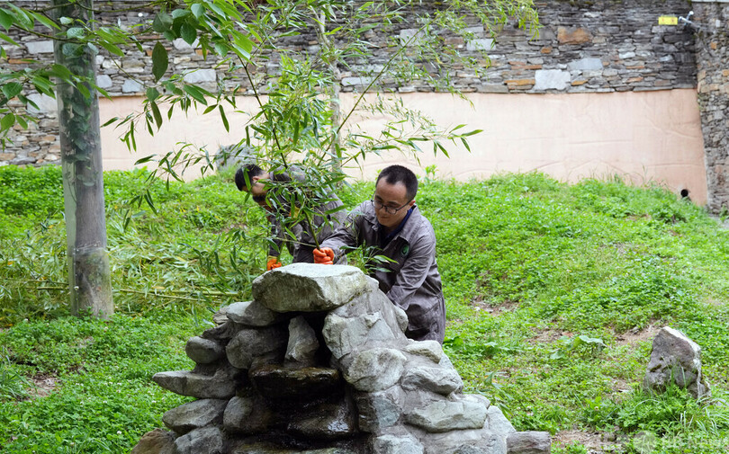 臥龍神樹坪基地では、入場者数に基づいて群衆統制と福宝の囲いの見学時間制限を実施し、各グループには5分間の観覧時間が設けられている。福宝は12日から定期的に一般公開される予定だ。(c)東方新報/AFPBB News