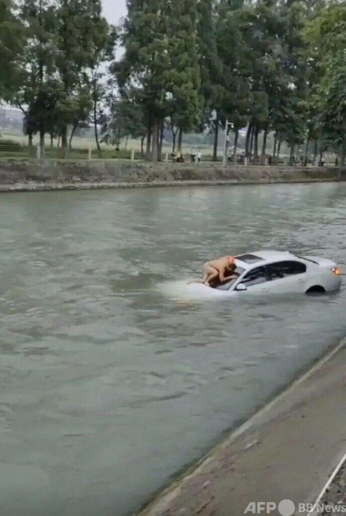 川に落ちた乗用車に意識不明の運転手 男性らが救助成功 中国成都市