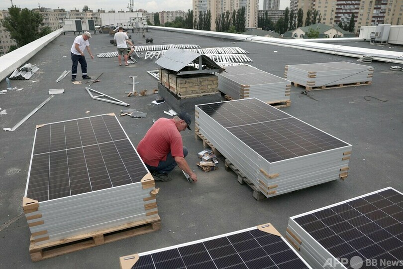ゼレンスキー氏は今週、国内のすべての病院と学校に「可能な限り早急に」太陽光パネルを設置しなければならないと訴えた。(c)AFP