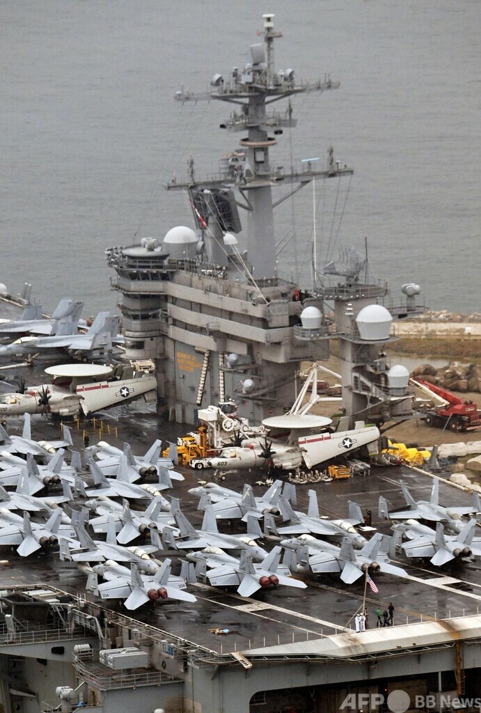 韓国海軍は米空母の寄港について、「韓米同盟の強固な共同防衛態勢と、北朝鮮からの高まる脅威に対処するという両国の断固たる決意を示すものだ」と説明した。(c)AFP