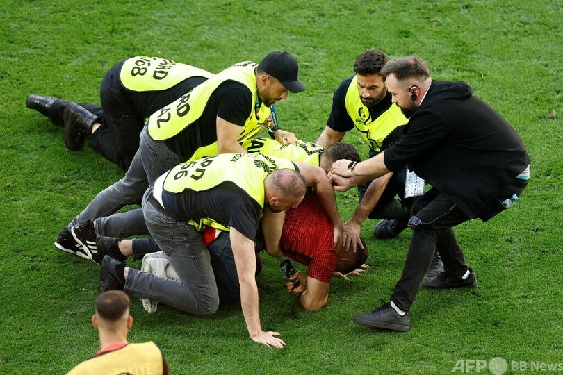 22日の試合では、ロナウドへ近づく侵入者を止めようとした警備員が、ポルトガルのゴンサロ・ラモス(Goncalo Ramos)と衝突する場面もあった。