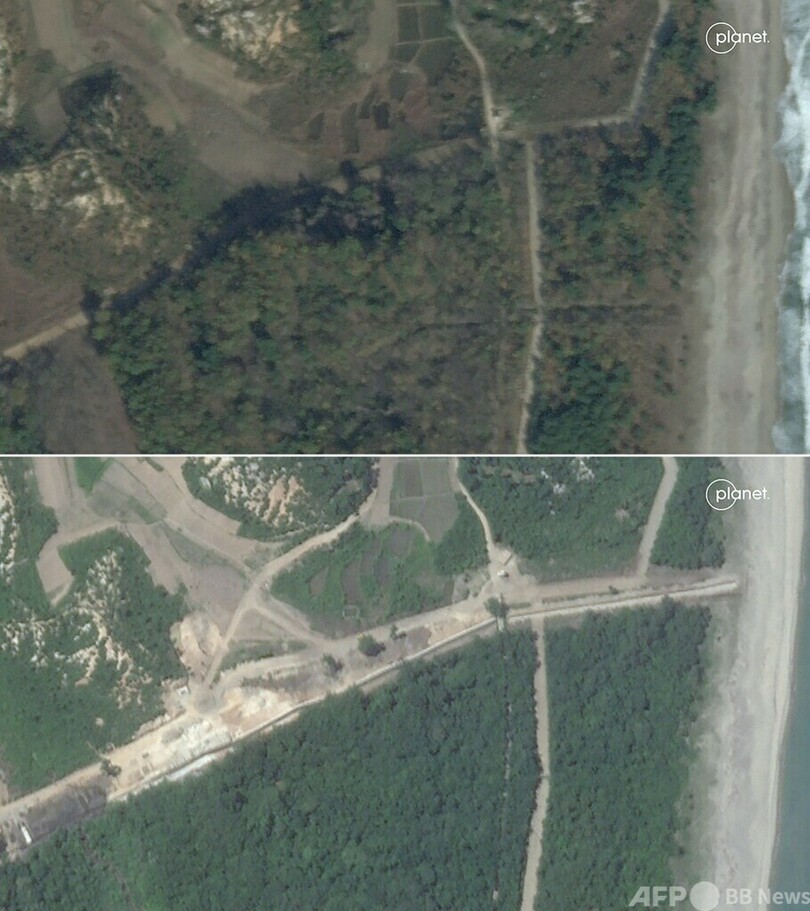 【6月24日 AFP】米衛星画像企業プラネット・ラブズ(Planet Labs)がこのほど公開した人工衛星画像から、韓国に接する北朝鮮・江原(カンウォン、Kangwon)道の「非武装地帯(DMZ)」の複数か所で、大規模な土木工事が行われていることが確認できる。