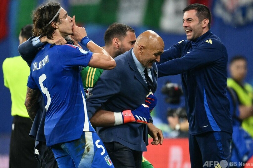 イタリアは後半アディショナルタイム8分、途中出場のザッカーニがカーブをかけたシュートを蹴り込んだ。独ライプチヒ(Leipzig)での一戦の最後の一蹴りでゴールが決まると、イタリアのサポーターは喜びを爆発させ、65歳のルチアーノ・スパレッティ(Luciano Spalletti)監督までもがピッチ脇を駆け上がった。