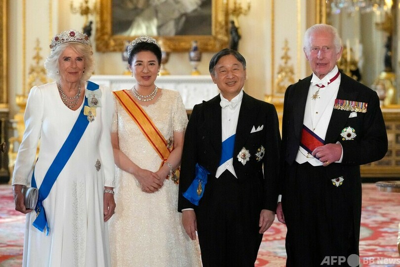 【6月26日 AFP】英国訪問中の天皇、皇后両陛下は25日、バッキンガム宮殿(Buckingham Palace)でチャールズ国王(King Charles III)夫妻主催の晩さん会に臨まれた。