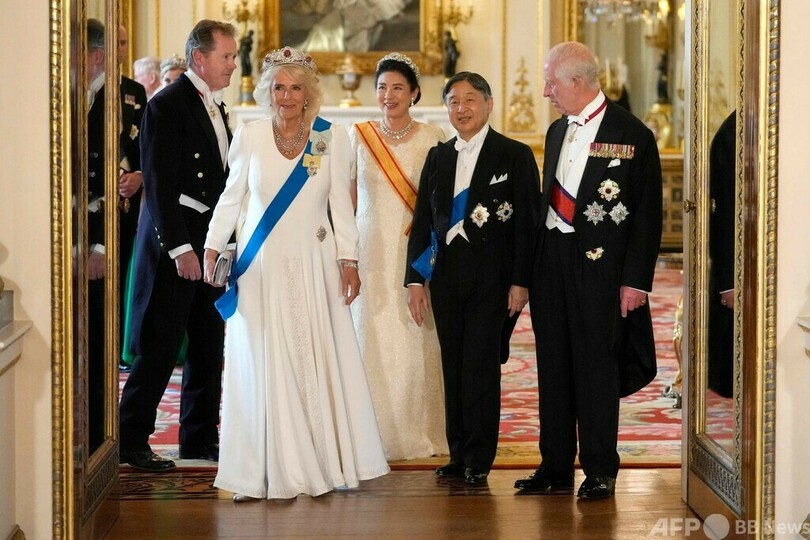 【6月26日 AFP】英国訪問中の天皇、皇后両陛下は25日、バッキンガム宮殿(Buckingham Palace)でチャールズ国王(King Charles III)夫妻主催の晩さん会に臨まれた。