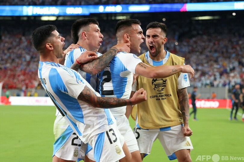 【6月26日 AFP】サッカーのコパ・アメリカ(2024 Copa America)は25日、各地でグループAの試合が行われ、アルゼンチンは最終盤にラウタロ・マルティネス(Lautaro Martinez)が決勝点を挙げ、1-0でチリを下して準々決勝進出を決めた。