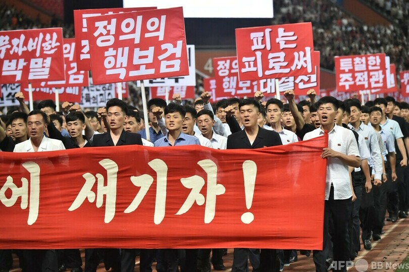 【6月26日 AFP】朝鮮戦争勃発から74年となる25日、北朝鮮の首都平壌にあるメーデースタジアム(Mayday Stadium)で大規模な反米集会が開催された。
