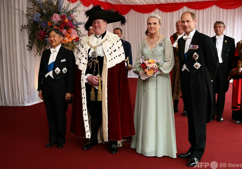 【6月27日 AFP】英国訪問中の天皇陛下は公式日程2日目となる26日、ロンドンの金融街シティー(City of London)の市庁舎ギルドホール(Guildhall)で晩さん会に出席された。