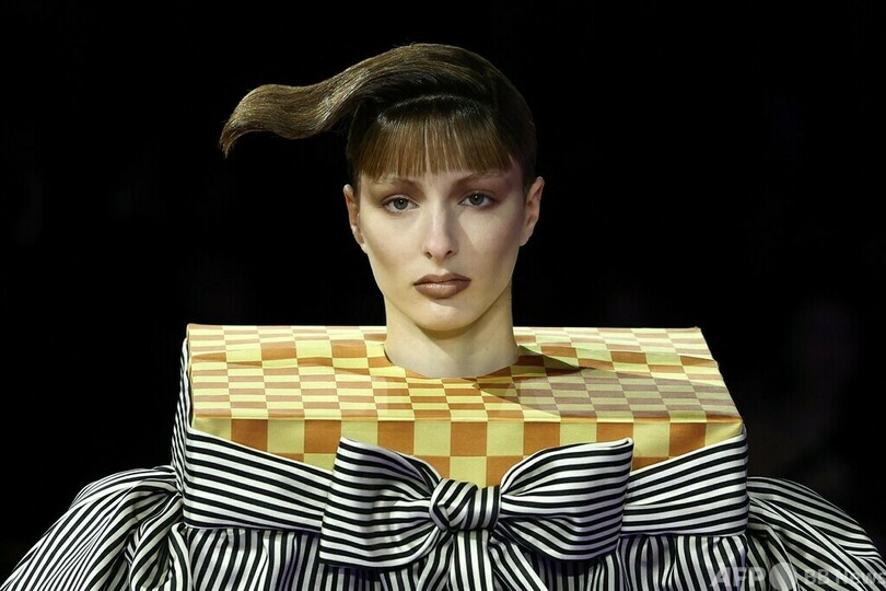 【7月10日 AFP】パリ・ファッションウィーク(Paris Fashion Week)、2024年秋冬オートクチュールで、「ヴィクター&ロルフ(Viktor & Rolf)」のショーに出演したモデル。フランス・パリで。(c)AFP