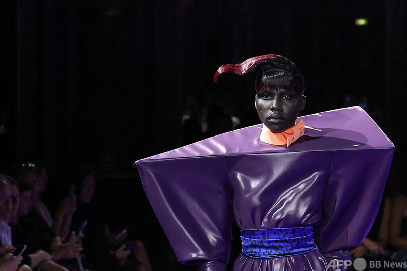 【7月10日 AFP】パリ・ファッションウィーク(Paris Fashion Week)、2024年秋冬オートクチュールで、「ヴィクター&ロルフ(Viktor & Rolf)」のショーに出演したモデル。フランス・パリで。(c)AFP