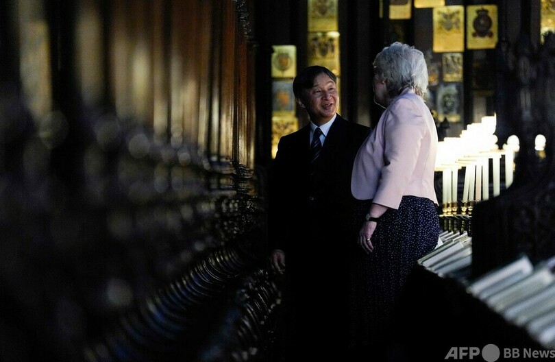【6月28日 AFP】英国を訪問中の天皇陛下は27日、ロンドン西郊ウィンザー城(Windsor Castle)の聖ジョージ礼拝堂(St George's Chapel)を訪れ、エリザベス女王(Queen Elizabeth II)の墓に供花された。