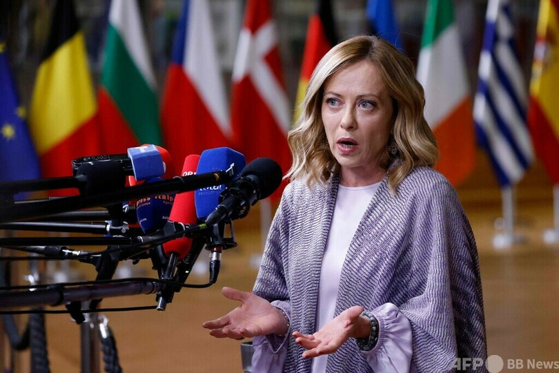 メローニ氏はベルギー・ブリュッセルで記者団に対し、「人種差別、反ユダヤ主義を唱える者は誰であれ、居場所を間違えている。そうした考えはイタリアの同胞と相いれないからだ」「この問題に関して、私の立場からの考えは、はっきりしている」と述べた。(c)AFP