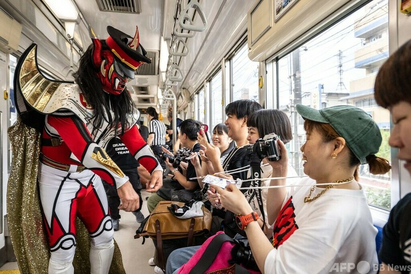 【6月29日 AFP】都電荒川線(東京さくらトラム)の車内で史上初となるプロレスイベント「都電プロレス」が29日に行われた。イベントでは鈴木みのる(Minoru Suzuki)と高木三四郎(Sanshiro Takagi)が対戦。東京都の小池百合子(Yuriko Koike)知事も登場し、開幕のあいさつを務めた。(c)AFP
