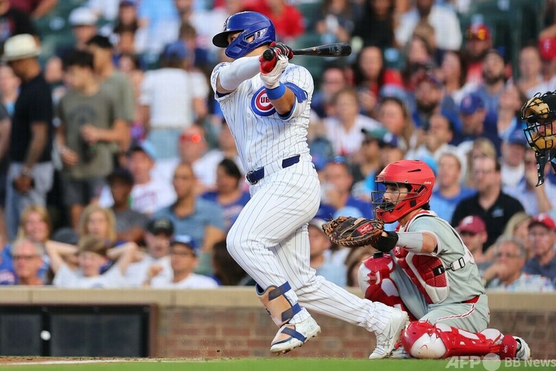 シカゴ・カブス(Chicago Cubs)の鈴木誠也(Seiya Suzuki)はフィラデルフィア・フィリーズ(Philadelphia Phillies)戦に4番・DHで先発出場し、9回に11号3点本塁打を放つなど、4打数2安打3打点だった。カブスは4-6で敗れた。(c)AFPBB News