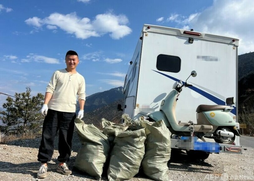 ごみ拾いしながらチベットを旅する中国男性 78日間で5トン拾う