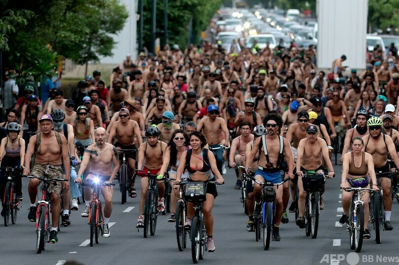 【今日の1枚】裸でフィニッシュ、サイクリストの安全のために メキシコ