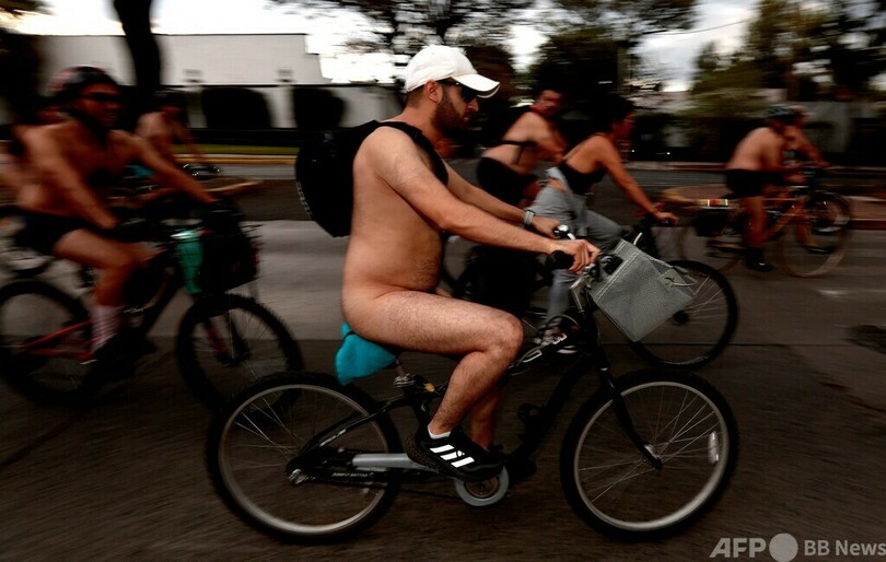 【今日の1枚】裸でフィニッシュ、サイクリストの安全のために メキシコ