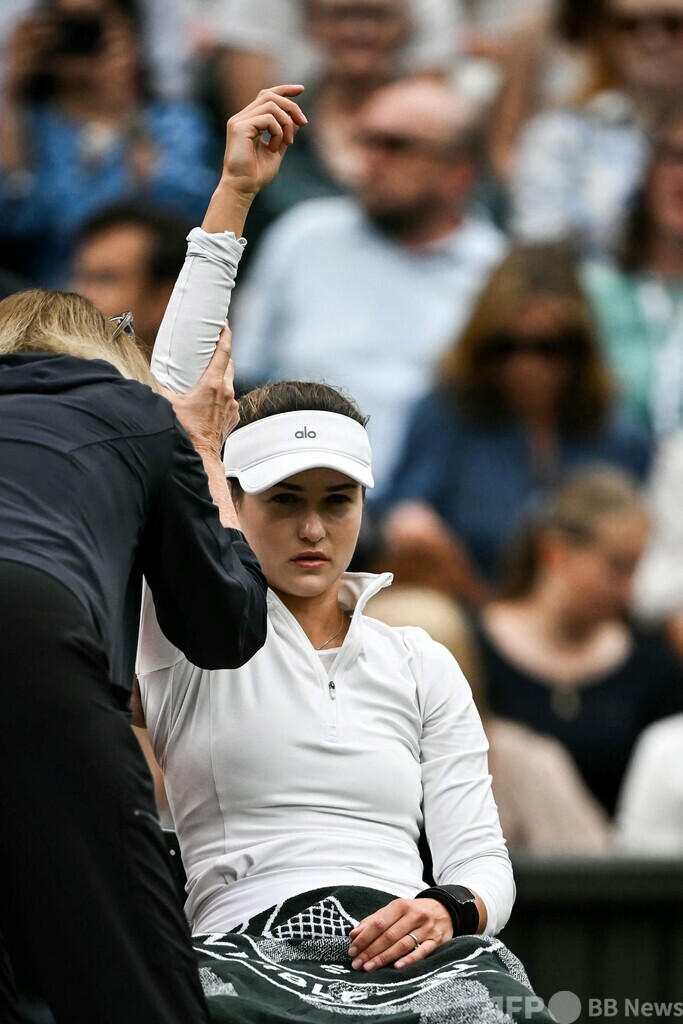 カリンスカヤは背中と手首をけがしていたとみられ、第1セット3-4の場面でメディカルタイムアウトを取ると、そこから5ゲーム連続で落として棄権を申し出た。