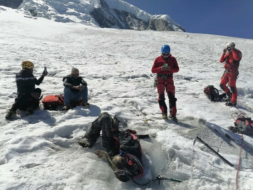 ペルー警察は、アンデス山脈(Andes)のブランカ(Blanca)山群の氷河が解けたことで、スタンプルさんの遺体が出てきたと説明した。