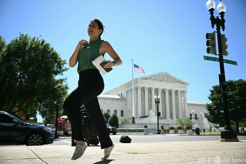 【7月12日 AFP】米ワシントンの連邦最高裁前で、配布された文書を持って走るジャーナリスト。ドナルド・トランプ(Donald Trump)前大統領が2020年大統領選の結果を覆そうとした事件をめぐり、米連邦最高裁は、大統領在任中の公的行為に関しては免責されるとの判断を示した。これにより、トランプ氏の公判は延期されることになり、同氏は、民主主義の「大きな勝利」とたたえた。(c)AFP