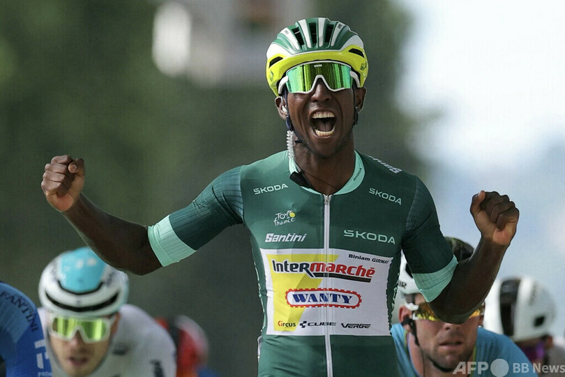 【7月12日 AFP】自転車ロードレース、ツール・ド・フランス(2024 Tour de France)は11日、第12ステージ(オーリヤック~ビルヌーブシュルロット、203.6キロメートル)が行われ、アンテルマルシェ・ワンティ(Intermarche Wanty)のビニアム・ギルマイ(Biniam Girmay、エリトリア)がフィニッシュ前の集団スプリントを制して今大会3勝目を挙げ、首位に立つポイント賞のマイヨ・ヴェール(グリーンジャージー)争いで2位との差を広げた。