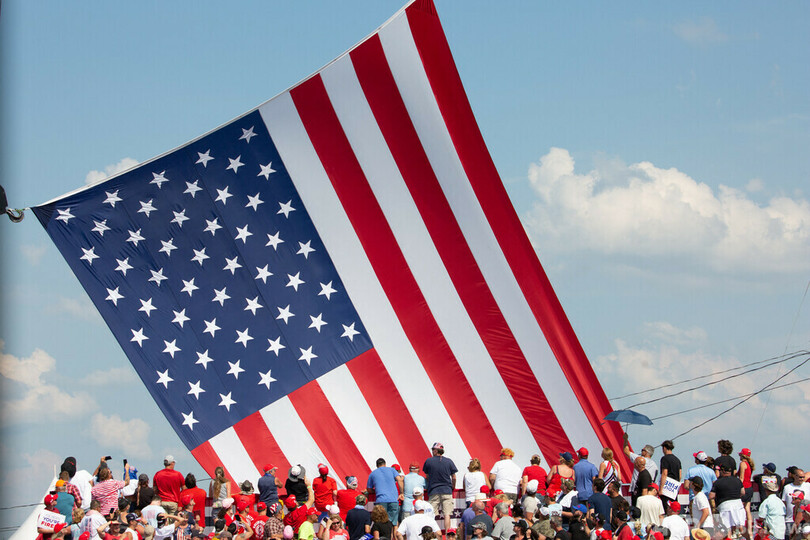 銃撃後、はためく星条旗を背に血を流しながらも拳を突き上げるトランプ氏の写真も、信奉者には好ましく映った。